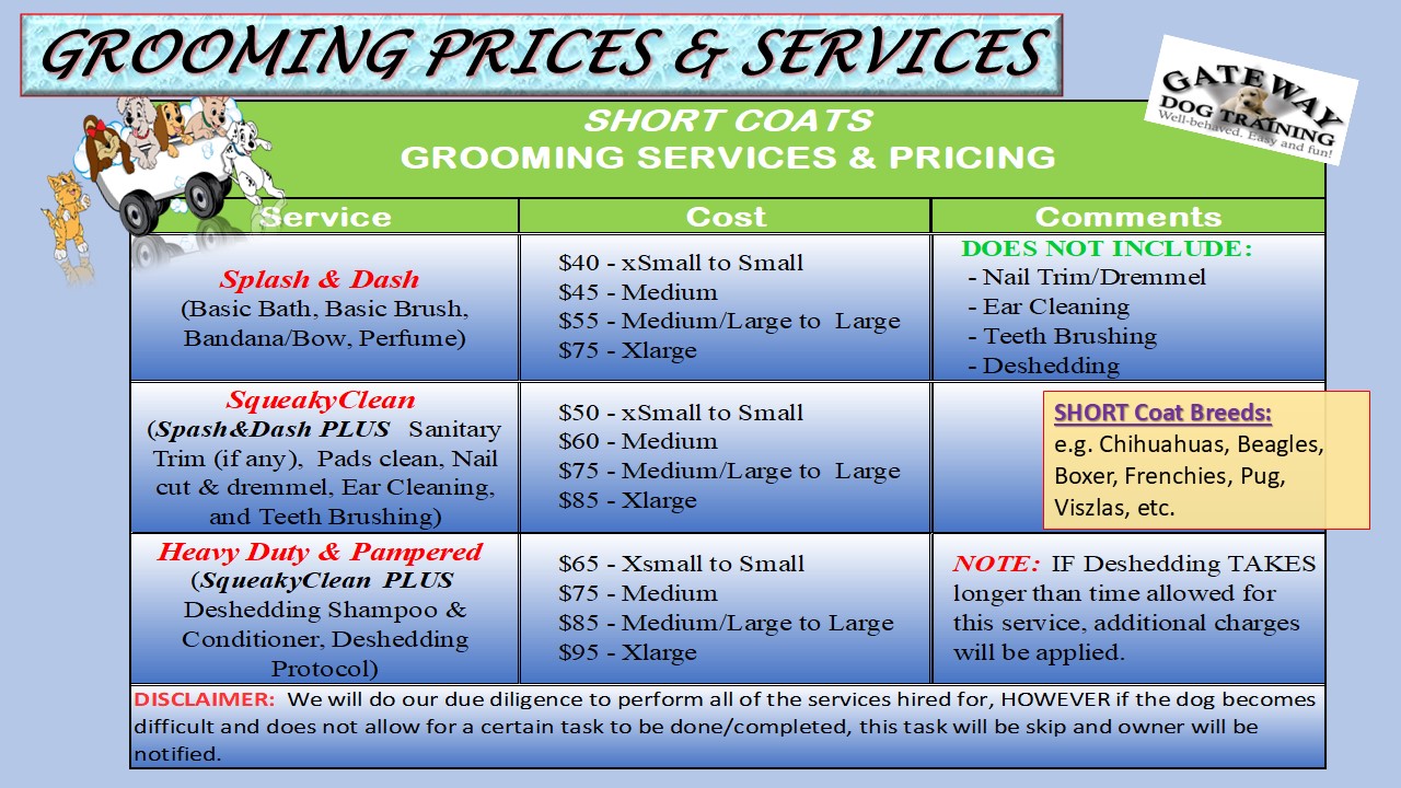 NOTE: We operate by apointments ONLY, to better provide you with quality, and 1-on-1 service. We currently DO NOT provide grooming services for Gigant sizes such as Great Danes, Mastiffs and others.